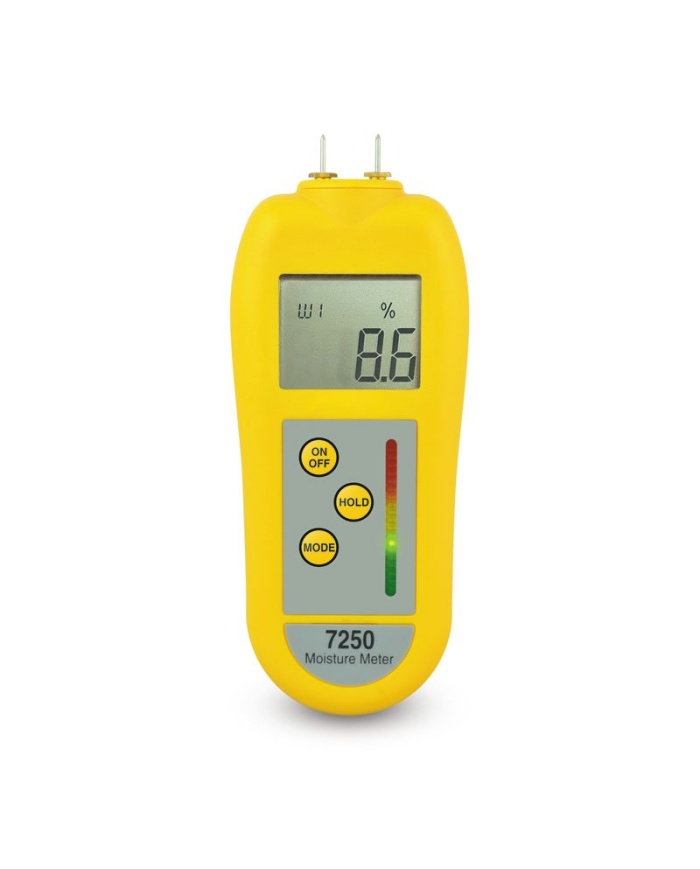 1.800 krETI Fuktmätare modell 7250. Med direktmonterade stiftgivare. För fuktmätning i trä, gips och betong. Med digital avläsning och LED skala för enkel visning. Utbytbara stiftgivare