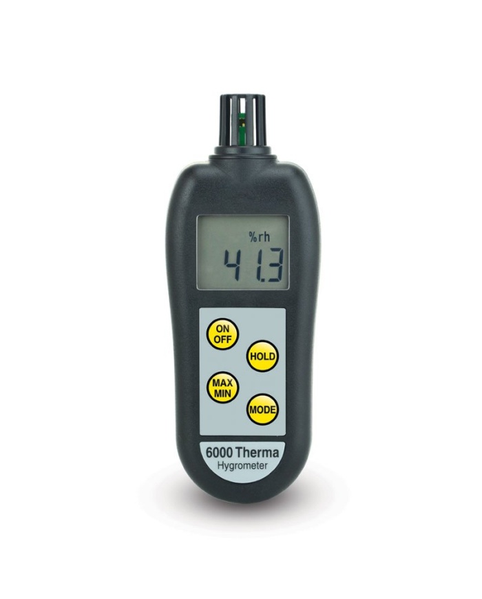 2.100 krETI Hygrometer %RH modell 6000. Visning antingen 0 till 100% RH, upplösning 0.1% RH eller temperatur -20 till 50°C. Mäter även daggpunkt. inbyggd givare