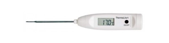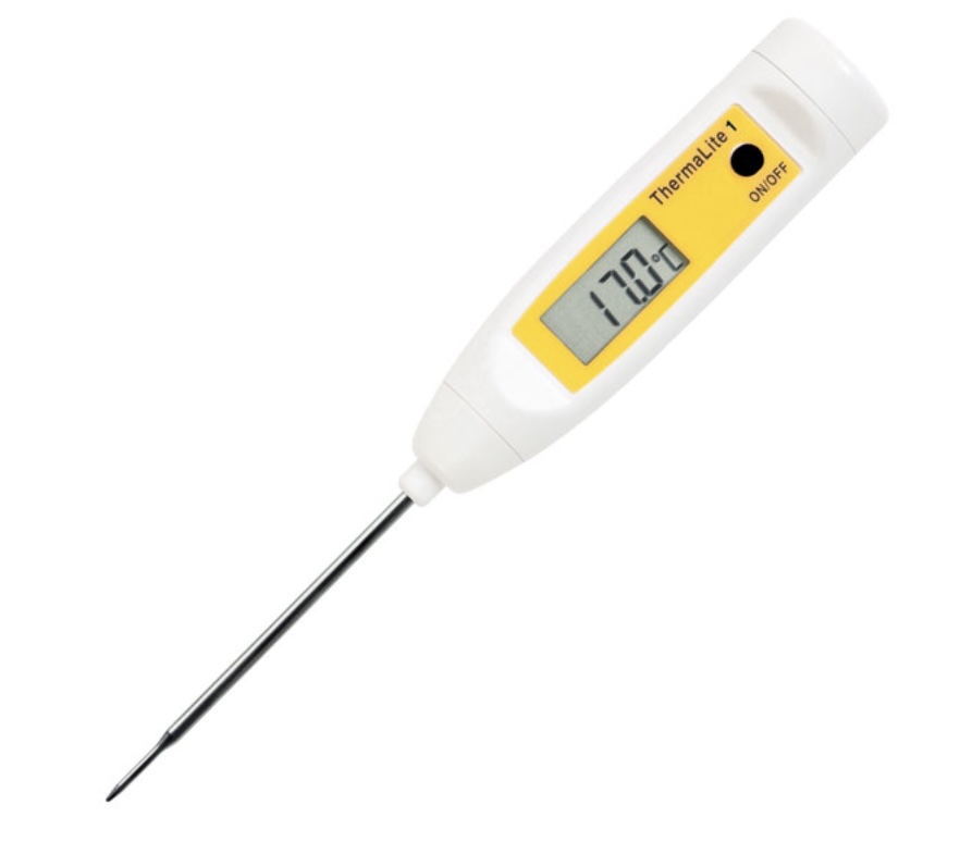 1.040 krETI Termometer Thermamite® för HACCP och egenkontroll för livsmedel. Vitt hölje. Inklusive fast insticksgivare med kabel. Mäter mellan -50°C till 300°C. Kalibreringscertifikat ingår.