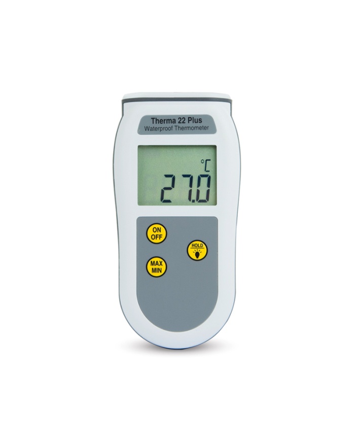 1.100 krETI Termometer Therma® 22 Plus. Noggrann termometer för både typ T och NTC-termistor-givare. Utan givare. Med Lumberg-kontakt och vattentät IP67. Mätområde -199.9°C till 400°C
