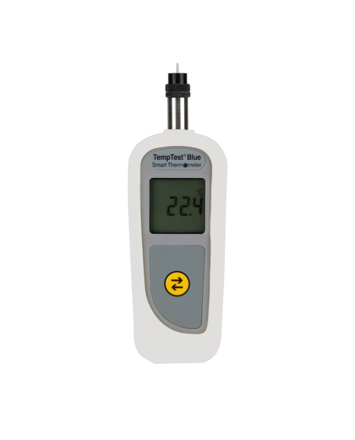 1.580 krETI TempTest® Bluetooth termometer. Med nålgivare. Skickar mätdata trådlöst. SDK-kit finns som utvecklarverktyg. Roterande display. IP67.