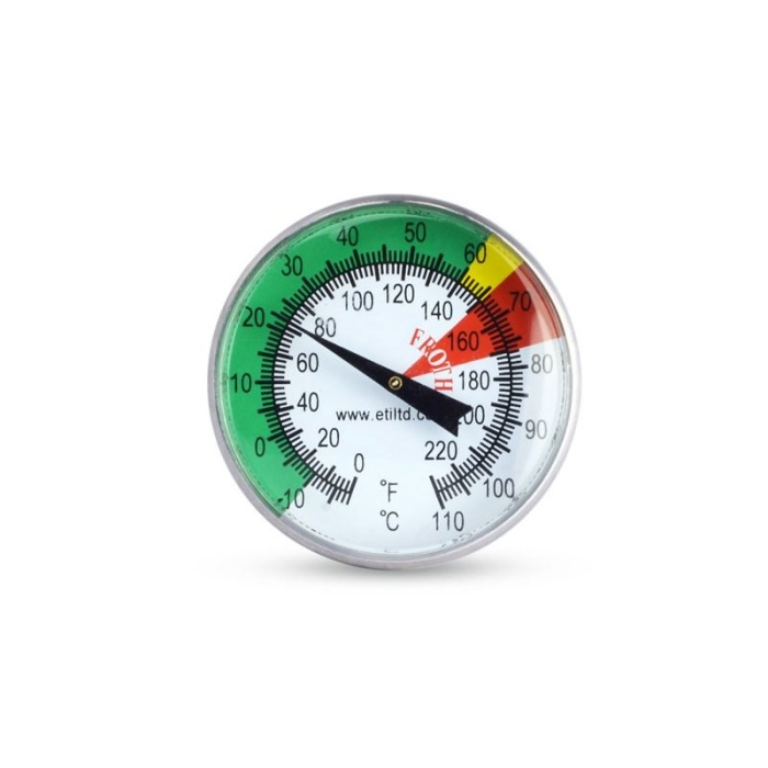 Tydlig färgkodad urtavla indikerar den optimala temperaturen för snabb och enkel användning. Mjölkskumningstermometrarna finns i 25 mm och 45 mm urtavlstorlekar, samt 130 mm och 175 mm längdstammar. Varje termometer levereras med en sondklämma i rostfritt stål, kalibreringsnyckel och skyddssondskydd.