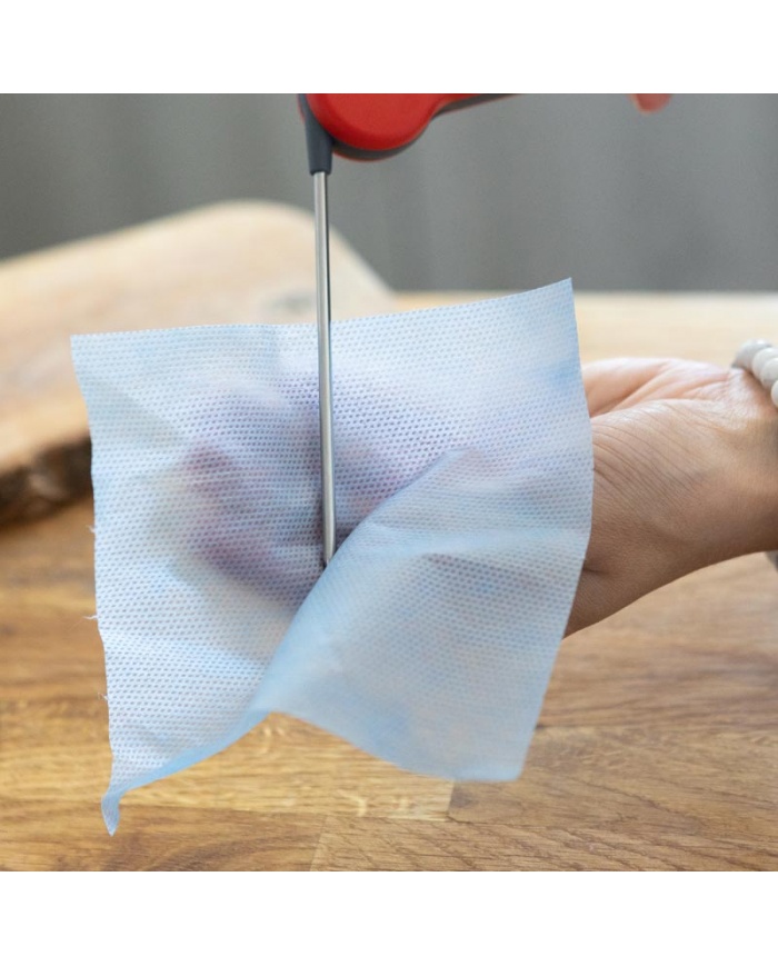 Sondservetter/cateringservetter, sex enskilda behållare – var och en innehåller 180 blå antibakteriella QAC-fria sondservetter, varje våtservett mäter 130 x 130 mm. Bekvämt och enkelt att använda dessa antibakteriella våtservetter är effektiva mot listeria, salmonella och andra kökssmuts. Tunnorna levereras också individuellt – beställningskod 836-052. Ett valfritt väggfäste finns också tillgängligt så att en enda behållare med våtservetter kan placeras bekvämt.