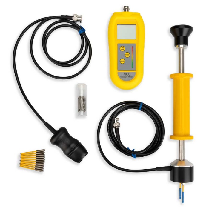 Designad speciellt för byggbranschen och baserad på 7000 fuktmätare, är detta fuktmätarsats en komplett lösning för att mäta fukt och fukt i en mängd olika byggmaterial. Detta kit representerar utmärkt valuta för pengarna eftersom det levereras i en gratis bärväska och innehåller en två-stifts sond, två förpackningar med stift och ett gratis skyddshölje.