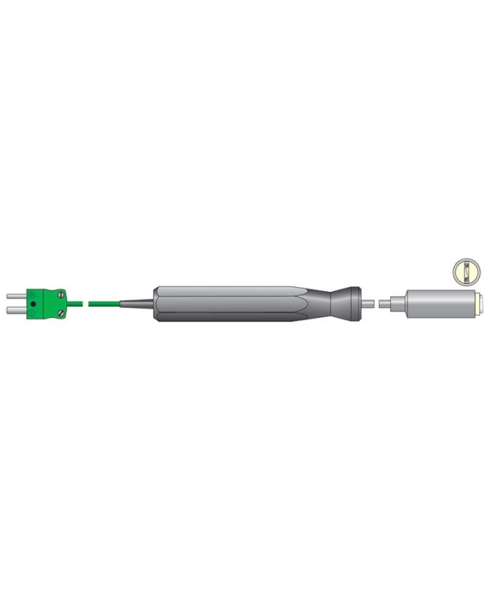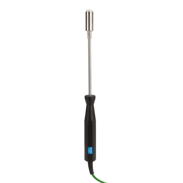 Högtemperatursond – Denna tunga ytsond med hög temperatur är idealisk för att mäta temperaturen på galler, värmeplattor och andra applikationer som kräver ett mätområde med hög temperatur. Svarstiden är mindre än en sekund. Sondens mått är 12 mm i diameter och 130 mm i längd. Sondtemperaturområde -100 till 1000 °C. En rätvinklig version finns också, beställningskod 123-028.