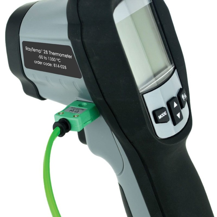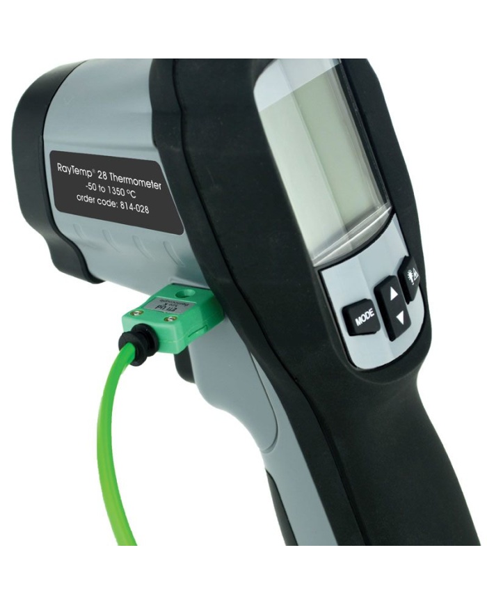 Två instanser i ett: RayTemp 28 innehåller ett miniatyrtermoelement typ K-sonduttag som gör det möjligt att använda ett brett utbud av typ K-termoelementprober för en mängd olika temperaturmätningstillämpningar, inklusive luft-, vätske- och yttemperaturer. Inga sonder ingår för att göra det möjligt för användaren att välja de som bäst passar deras applikation.