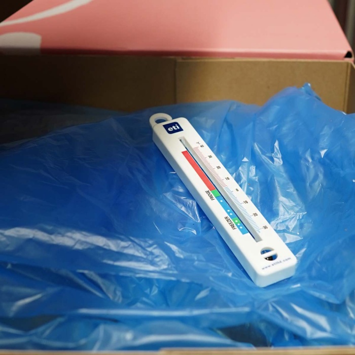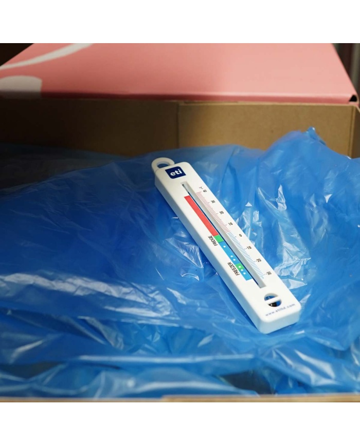 Denna ETI vertikala spritfyllda kylfrystermometer är billig och har tydligt markerade färgkodade zoner för enkel läsning.