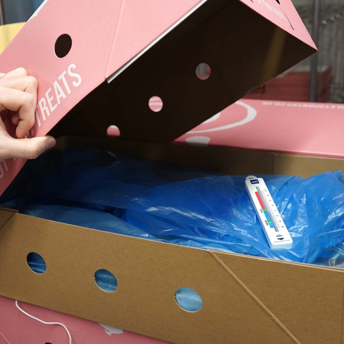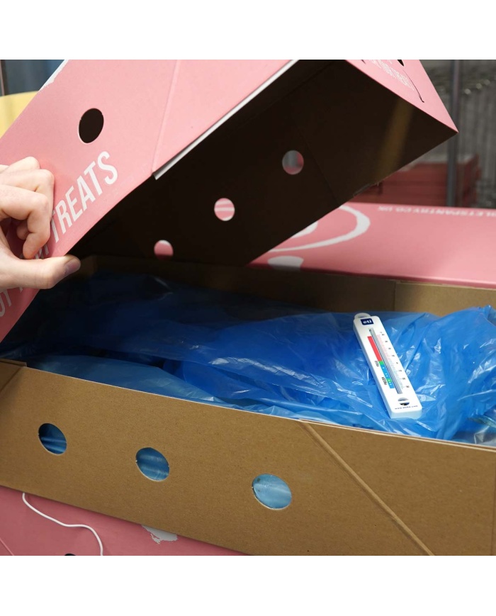 Det vita ABS-fodralet mäter 24 x 150 mm och har en plastkrok att hänga från en hylla. En idealisk, billig termometer för hem, kontor eller kommersiell kyl – frys.