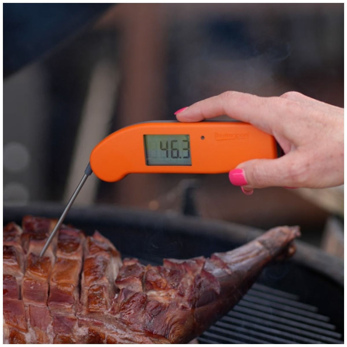 ETI Thermapen® ONE Orange. Snabb (1s) responstid. Utfällbar nålgivare. Roterande display för enkel avläsning. IP67. Belyst display. Kalibreringscertifikat.