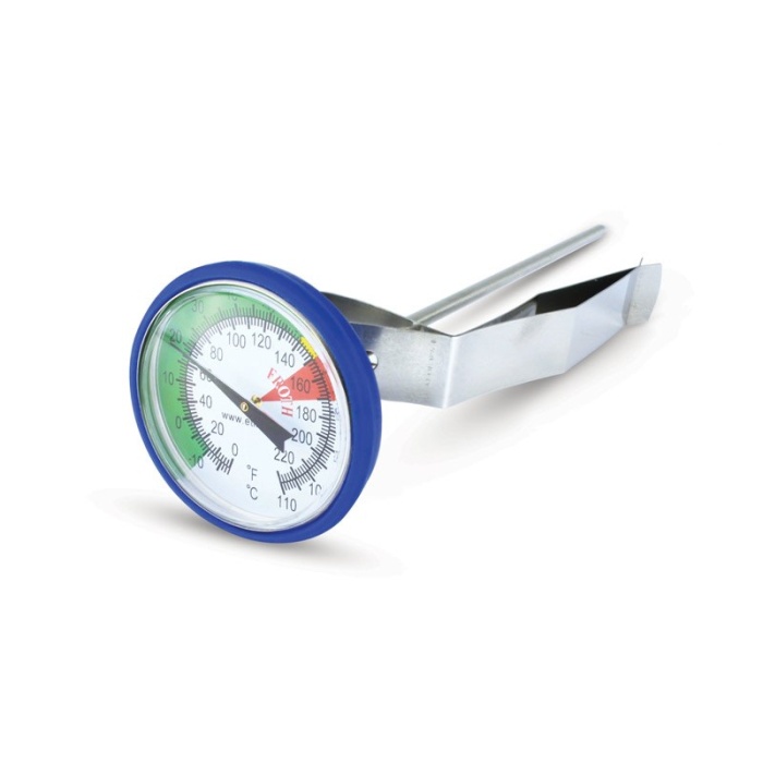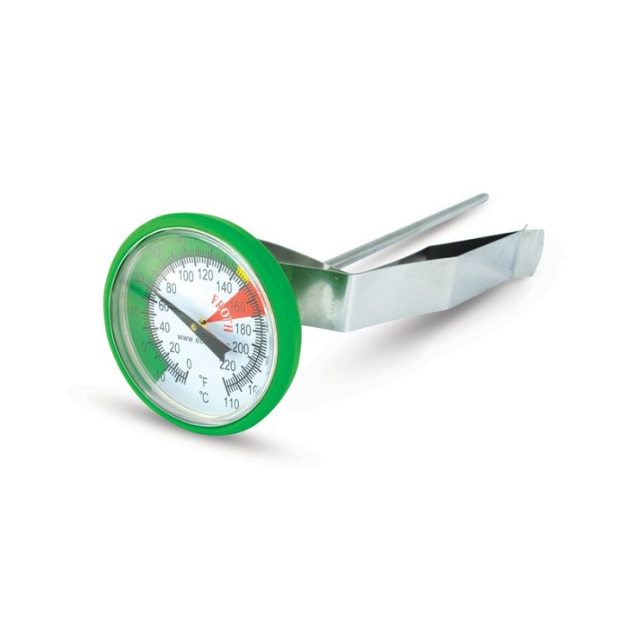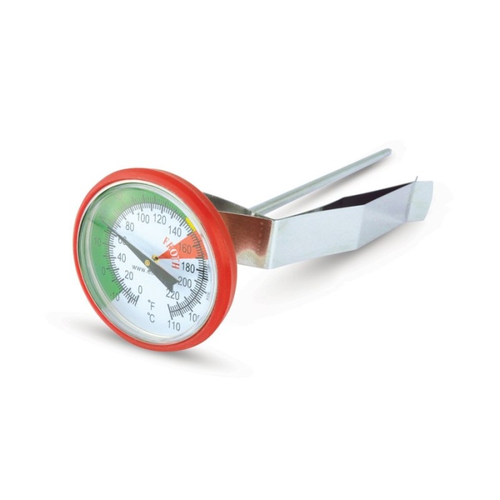 ETI Traditionell analog barista mjölk-termometer. Ø45mm mättavla, längd 175mm Förpackning med 3st. Silikonöverdrag – Grön, Röd, Blå